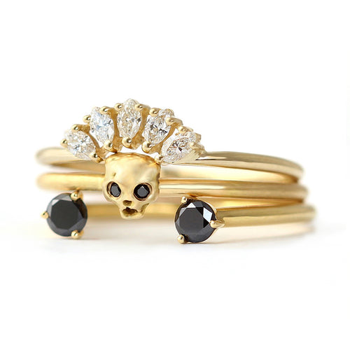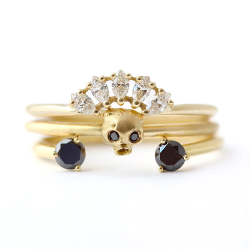 Cat Skull Wedding Set - Bohemian Bridal Set Of Three Rings
