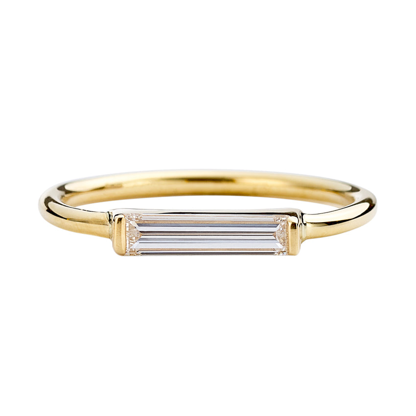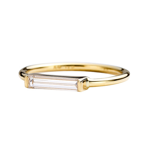 Minimalist Diamond Ring - Long Baguette Solitaire Ring - OOAK