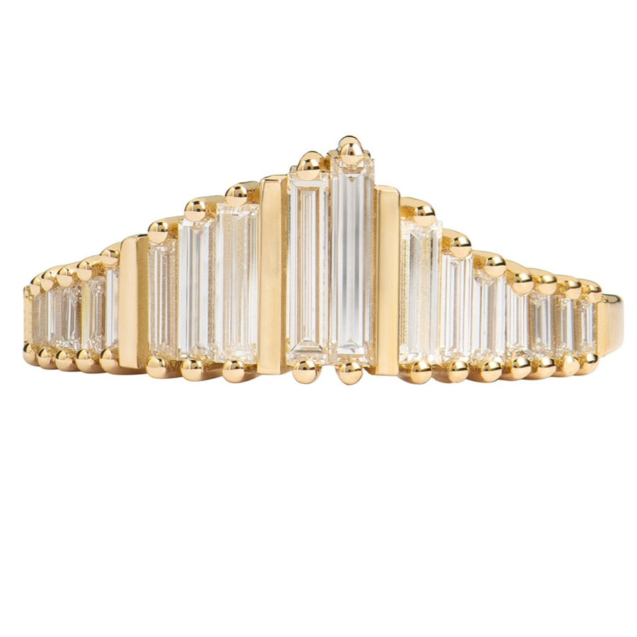 Baguette Diamond Ring with Gradient Diamonds and Gold Details