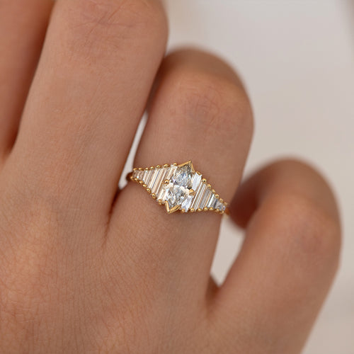 Navette Marquise Diamond Halo Ring with Pave Detailing