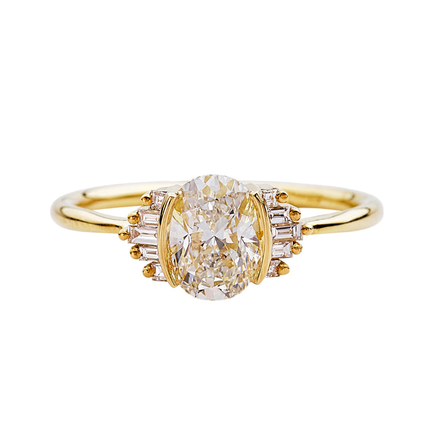 Oval Engagement Ring with Art Deco Baguette Element - 1 carat