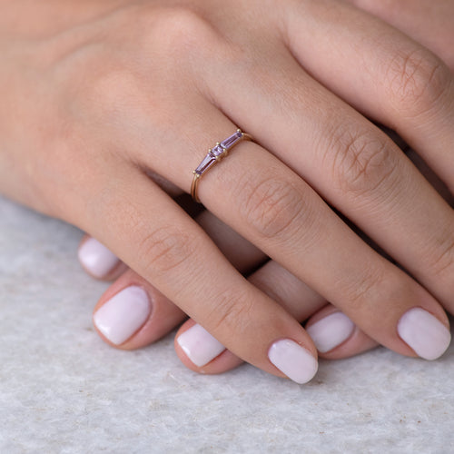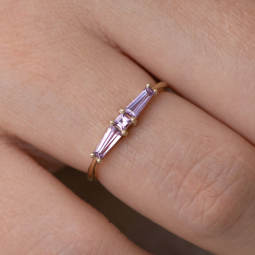 Lilac needle baguette ring