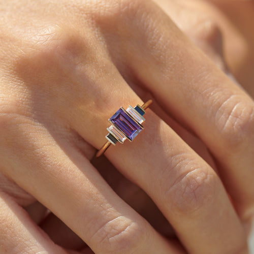 Carina OOAK Purple Sapphire & Baguette Diamond Engagement Ring