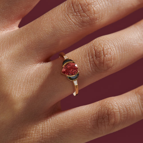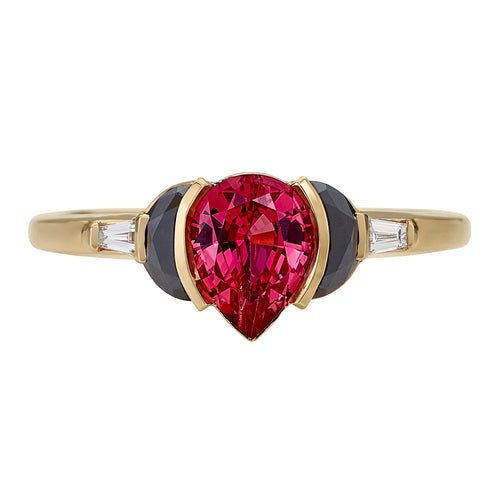 Vamp OOAK Sapphire Half Moon Black Diamond Engagement Ring