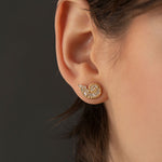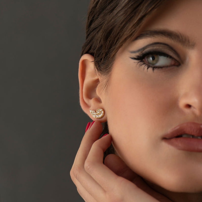 The White Diamond Snail Post Earrings are handcrafted in our studio from 18K gold. In this design, baguette and carre diamond swirl inside in a gold spiral silhouette that elegantly curves along the lobe. These earrings add just the right amount of sparkle to any look.