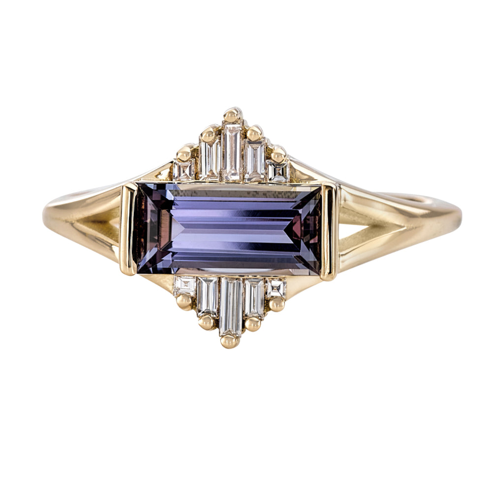 Tanzanite Engagement Ring with Baguette Diamond Pyramids - OOAK