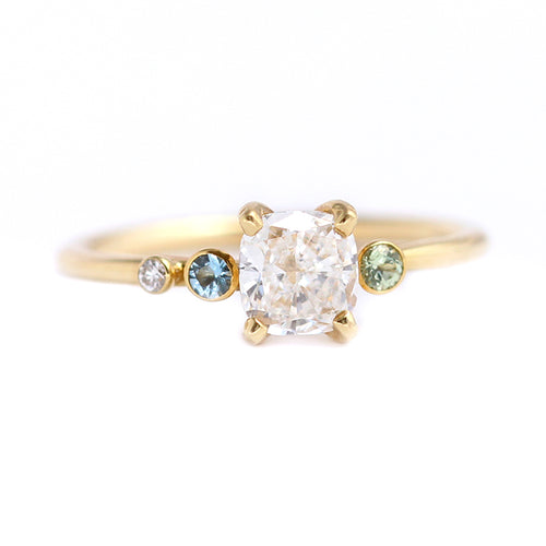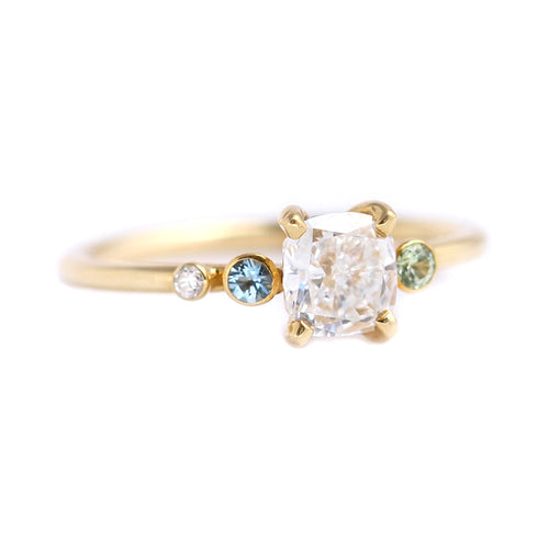Asymmetric Diamond Cluster Engagement Ring with Aquamarine And Mint Garnet - Cluster Engagement Ring