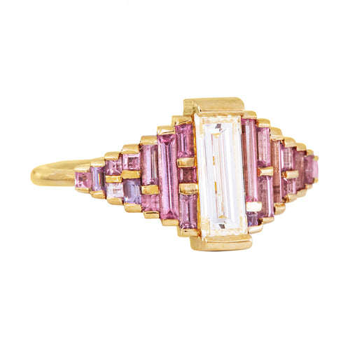Purple and Lilac Sapphire Ring with Baguette Diamond