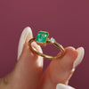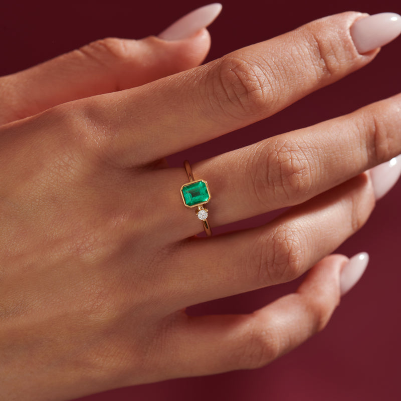 Emerald Engagement Ring with A Small Diamond - Asymmetric Emerald Ring