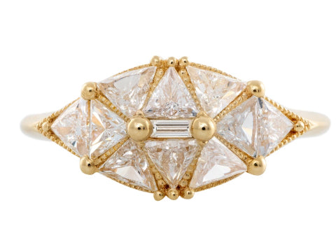 Custom Reflective Dome Ring with Ten Triangle Cut Lab-Grown Diamonds