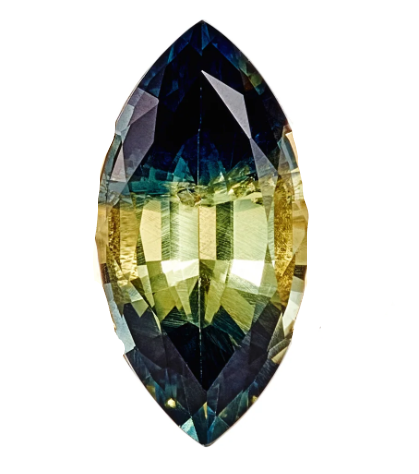 Custom OOAK Parti-Sapphire Marquise Diamond & Gold Engagement Ring