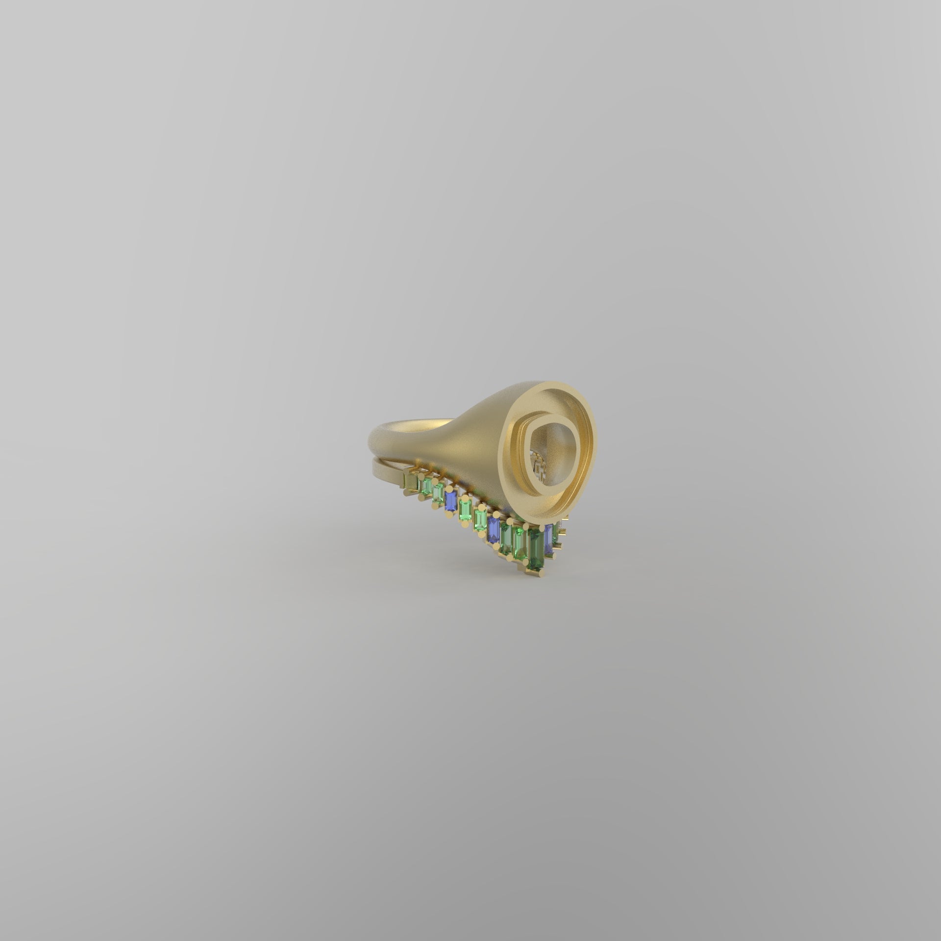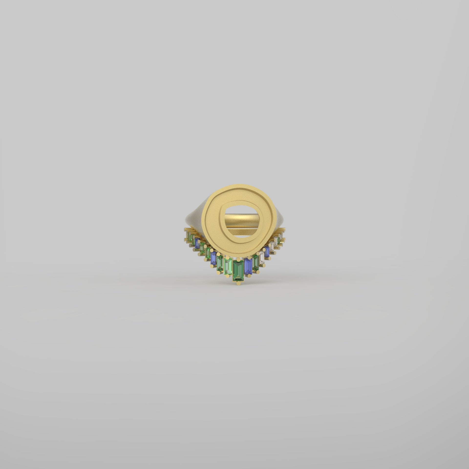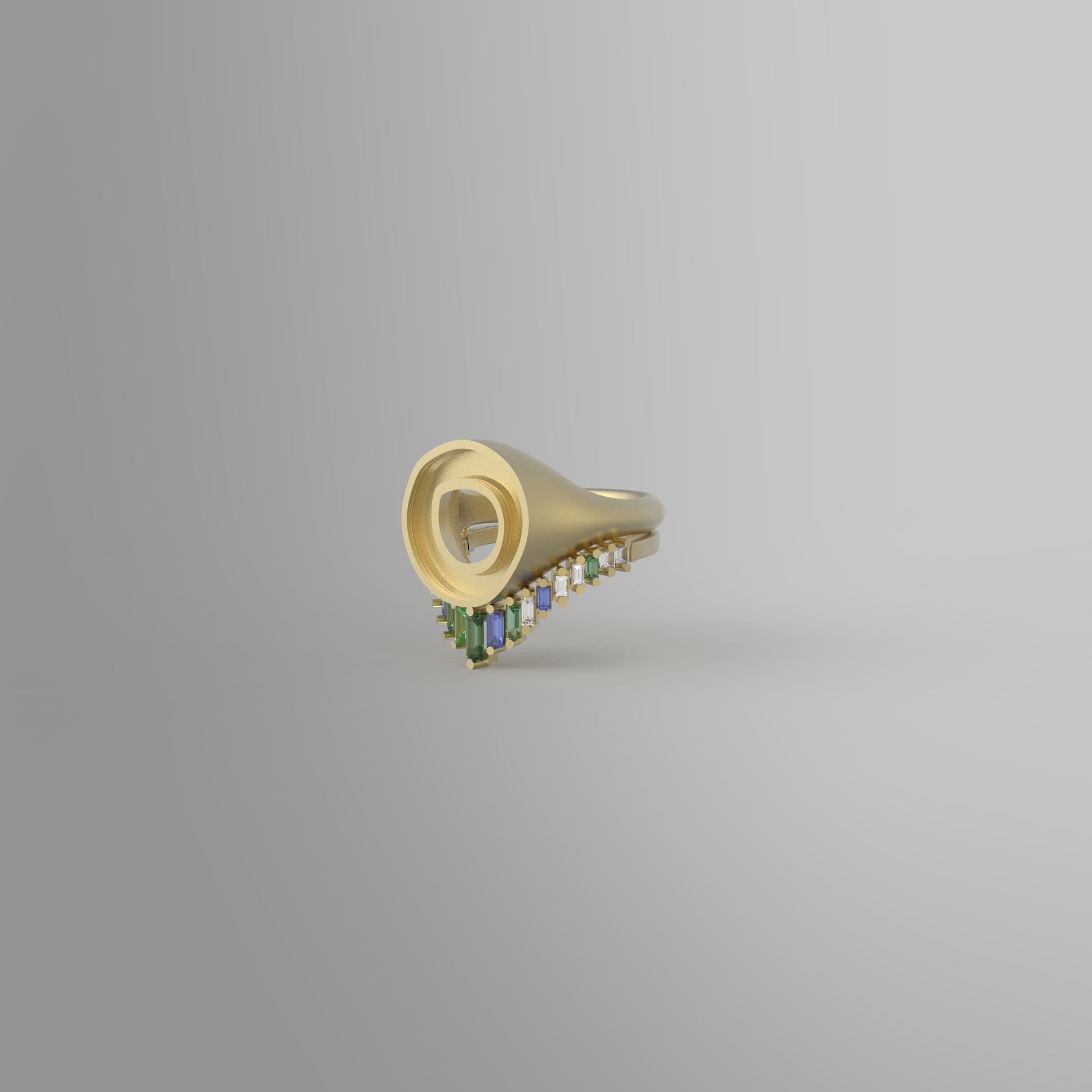 - Customized with a combination of diamonds, green and blue sapphires, and tsavorites gemstones