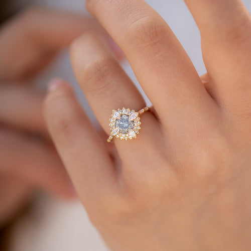 Golden Lotus Engagement ring with Grey and White Diamonds
