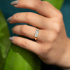 The modern solitaire ring with a baguette cut aquamarine is a colorful twist on our minimal baguette collection. Featuring a baguette cut aquamarine set horizontally across the finger and a curvaceous golden band; this design is as striking as it is sleek.