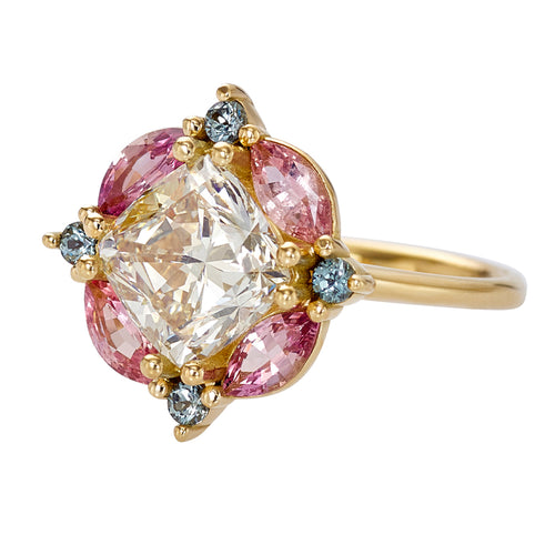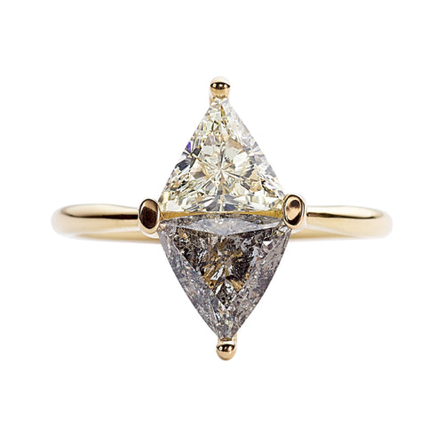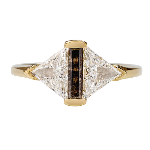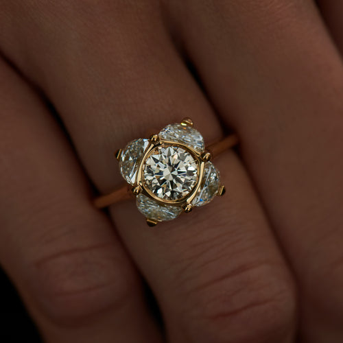 Golden Lotus Engagement ring with Grey and White Diamonds