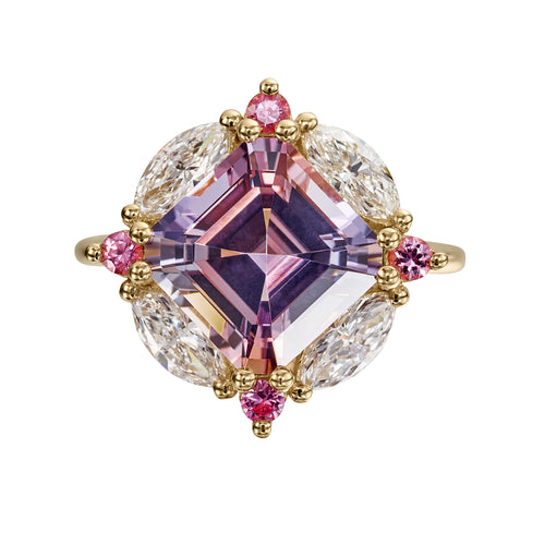 Mirrored Cluster Ring with Asscher Cut Diamond