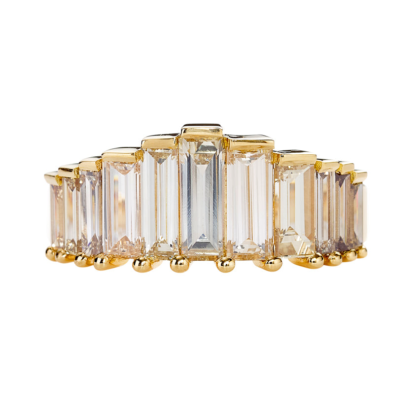 Reflective Dome Ring with Ten Triangle Cut Diamonds