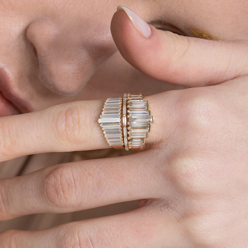 Geometric Bar Ring with Triangle Cut Diamonds in 18k Solid Gold