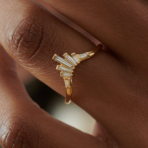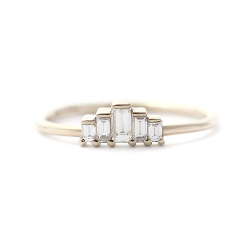 White Baguette Diamond Nesting Art Deco Wedding Ring