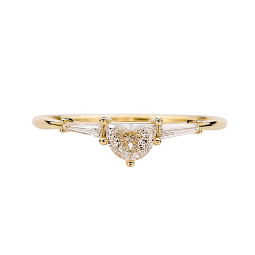 Three Stone Engagement Ring with Half Moon and Baguette Cut Diamonds