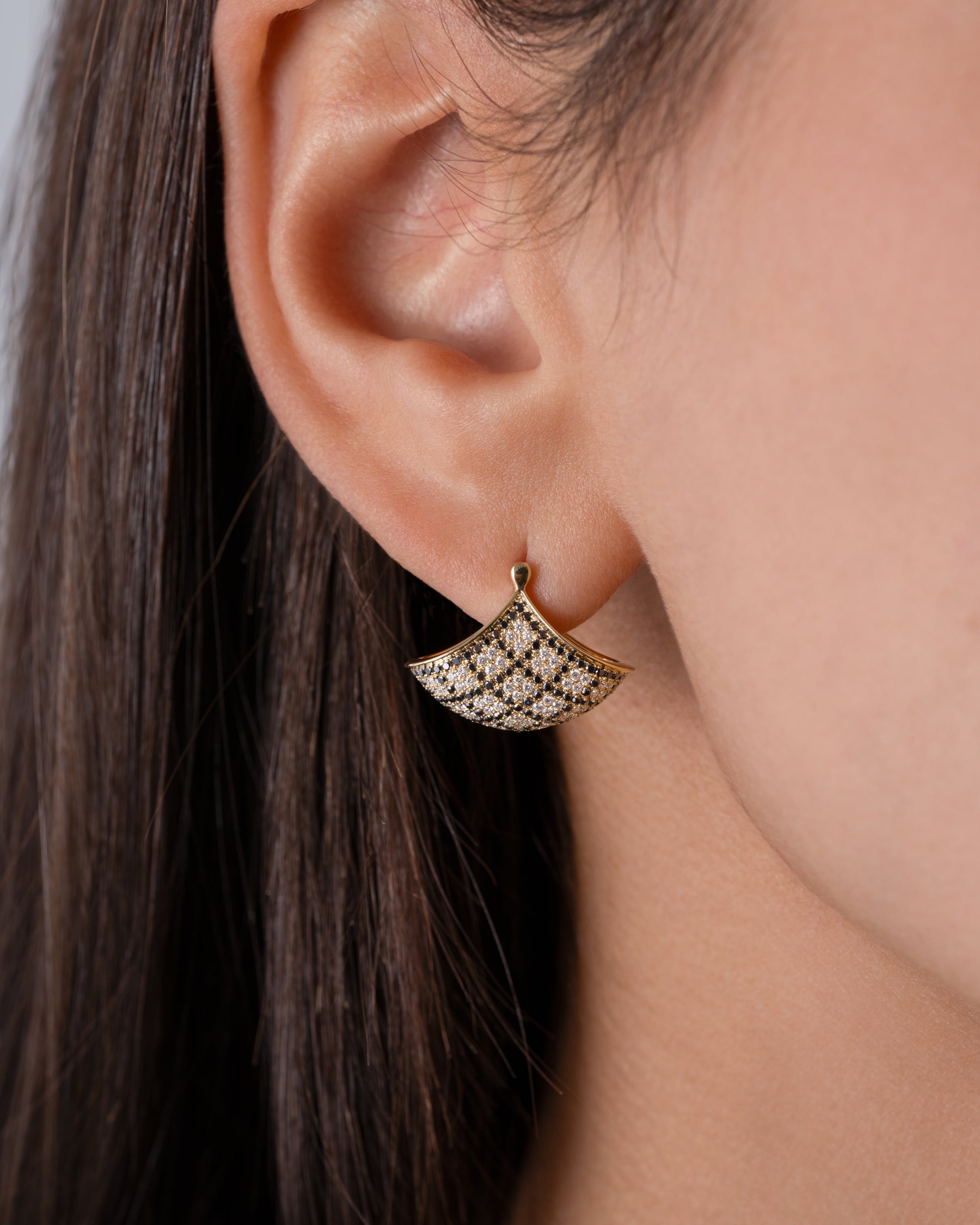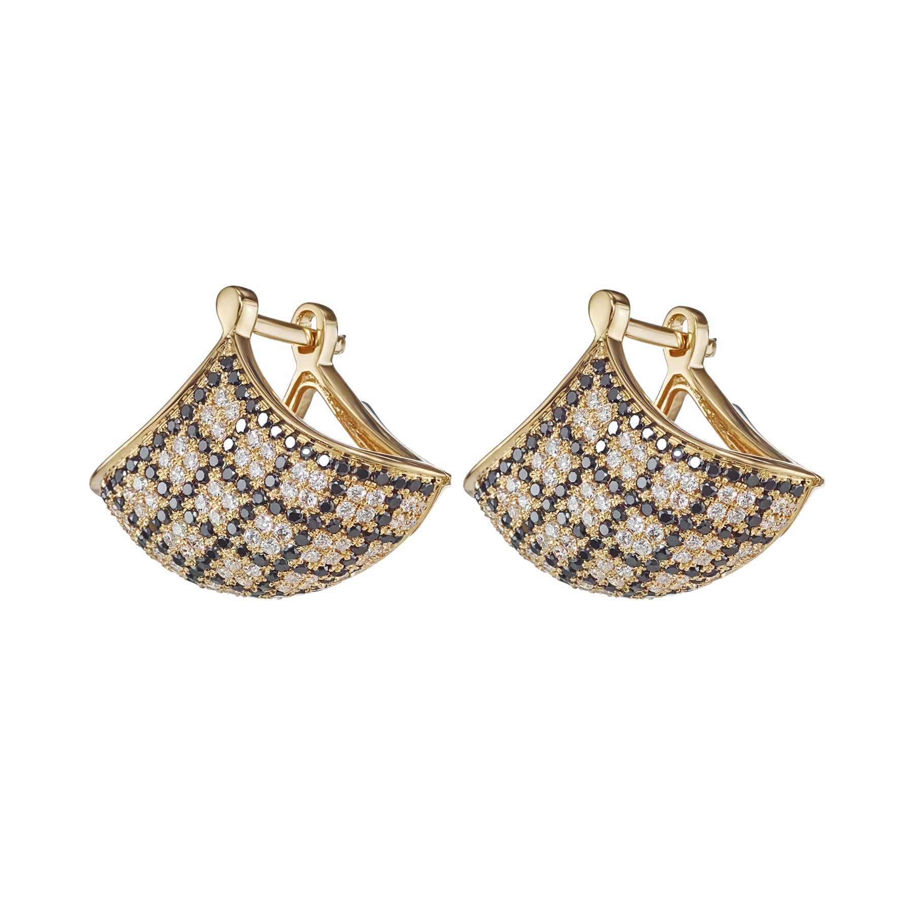 Black & White Pave Diamond Plaid Fan Earrings
