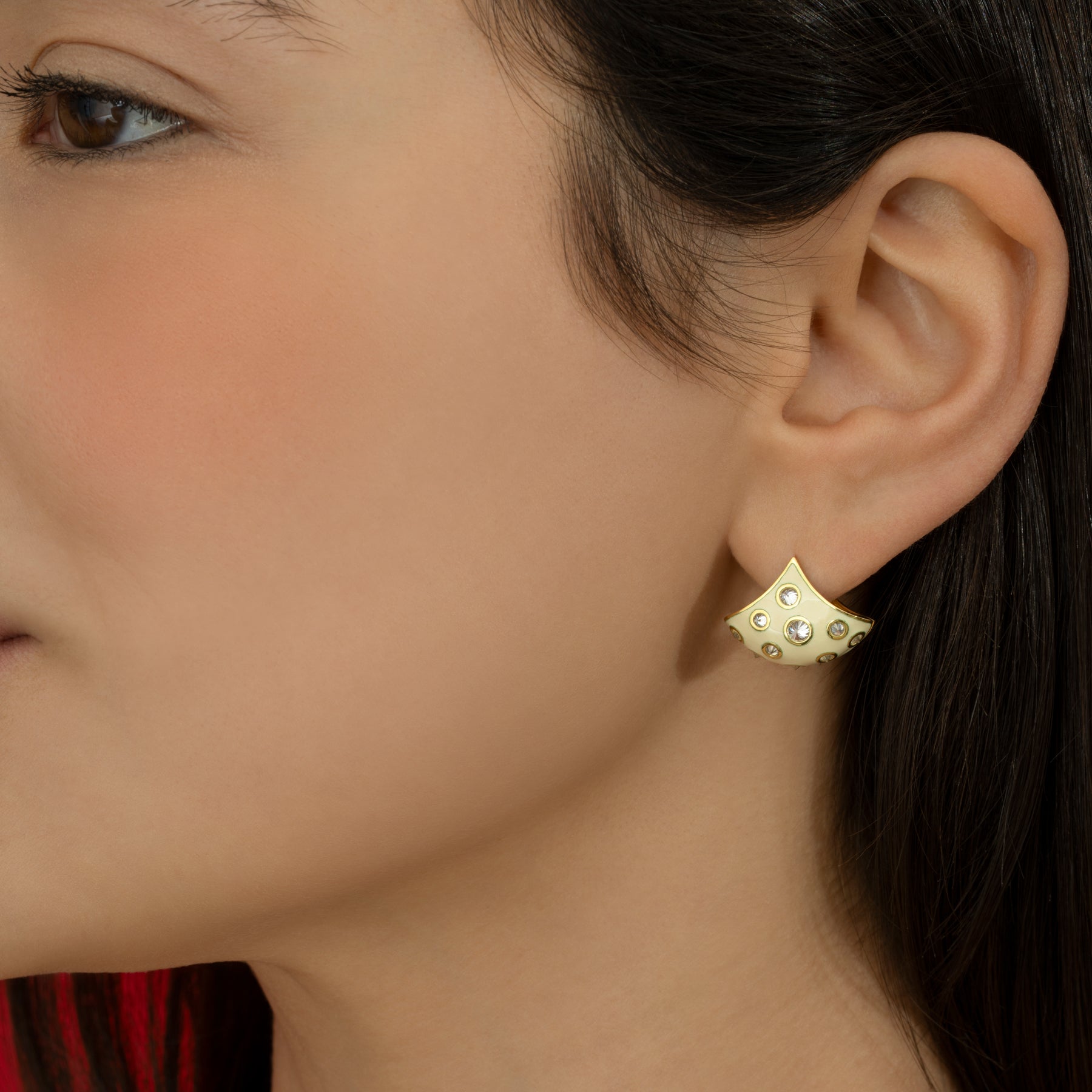Enamel Reverse Set White Diamond Fan Earrings