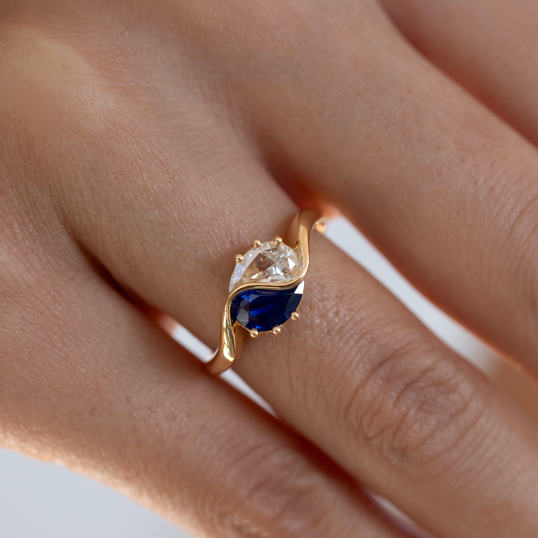 Yin Yang Blue Sapphire & Diamond Ring