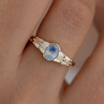Delicate Parti-Sapphire Engagement Ring with Tapered Diamond Ornaments - OOAK