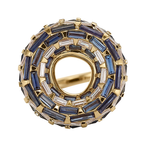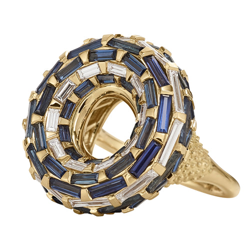 Saturn Moons Ring with Blue Sapphire & White Diamond Baguettes