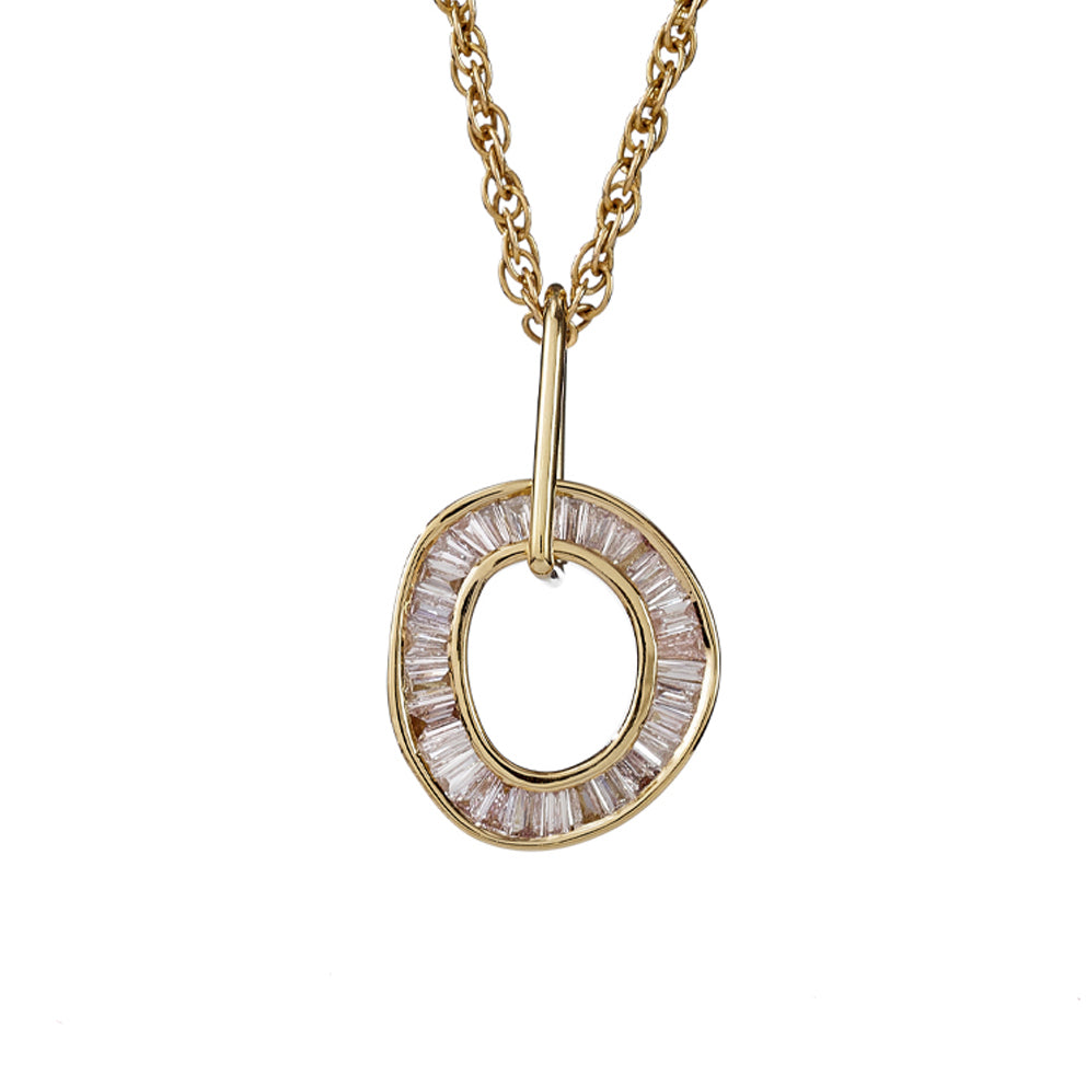 Baguette Diamond Necklace with a Fluid Sphere Pendant