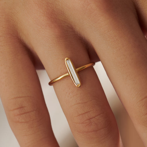 Minimalist Engagement Ring with OOAK Long Baguette Diamond