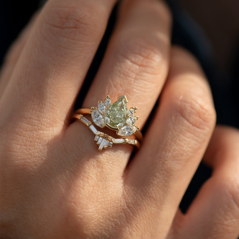 This deco inspired baguette tower nesting wedding ring will add shimmering flare to your ring stack.