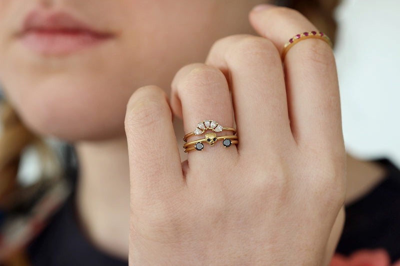 Cat skull wedding set with two round 1.2 mm black diamonds.