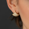 The Pave Diamond Fan Earrings are handcrafted in our studio from 18K gold. In this design, brilliant pave diamonds gently hug and encrust the lobe in a fusion of metal, stone and man. Whether dressed up or down, these earrings add edgy sparkle to any look.
