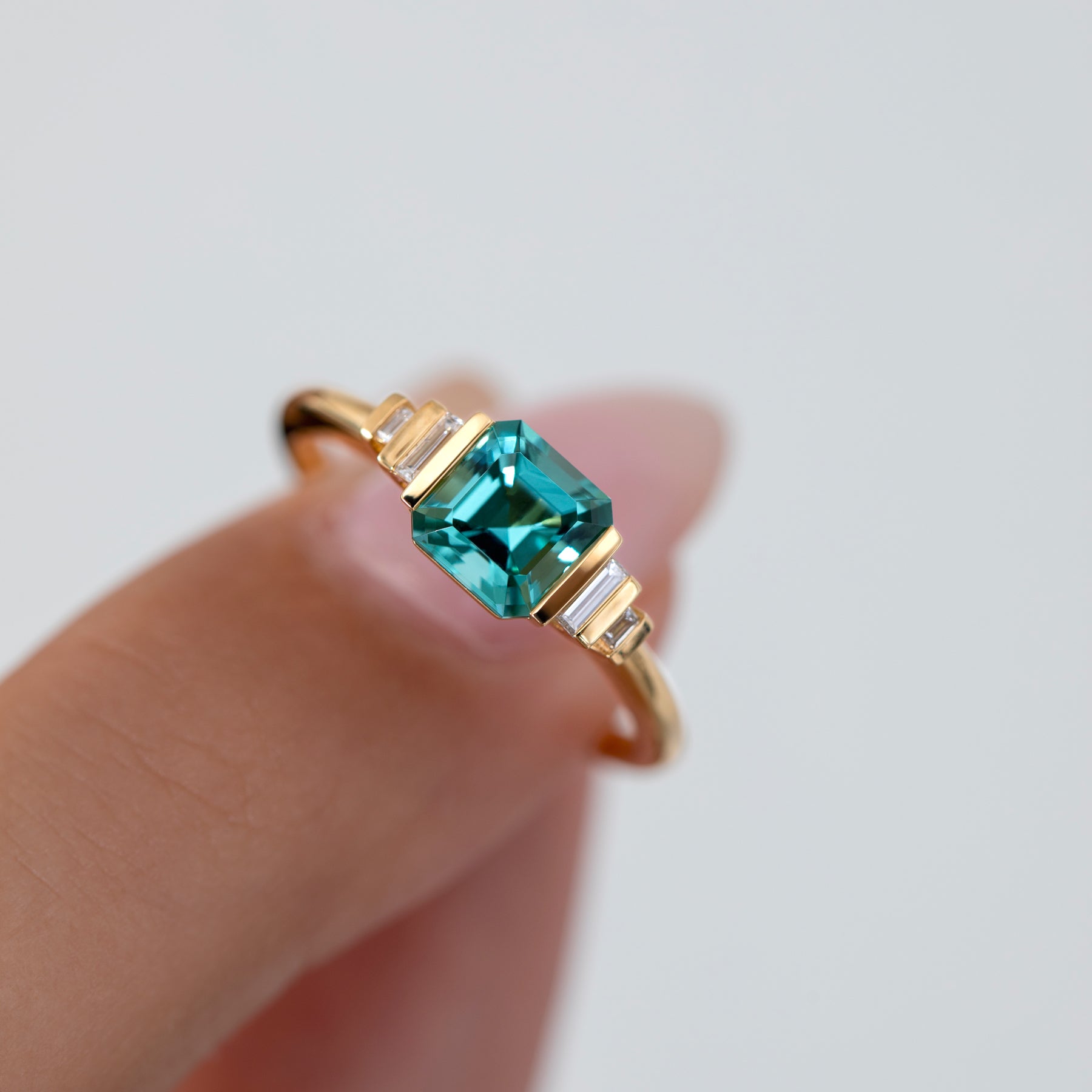 18K gold | Asscher cut tourmaline | Baguette diamonds