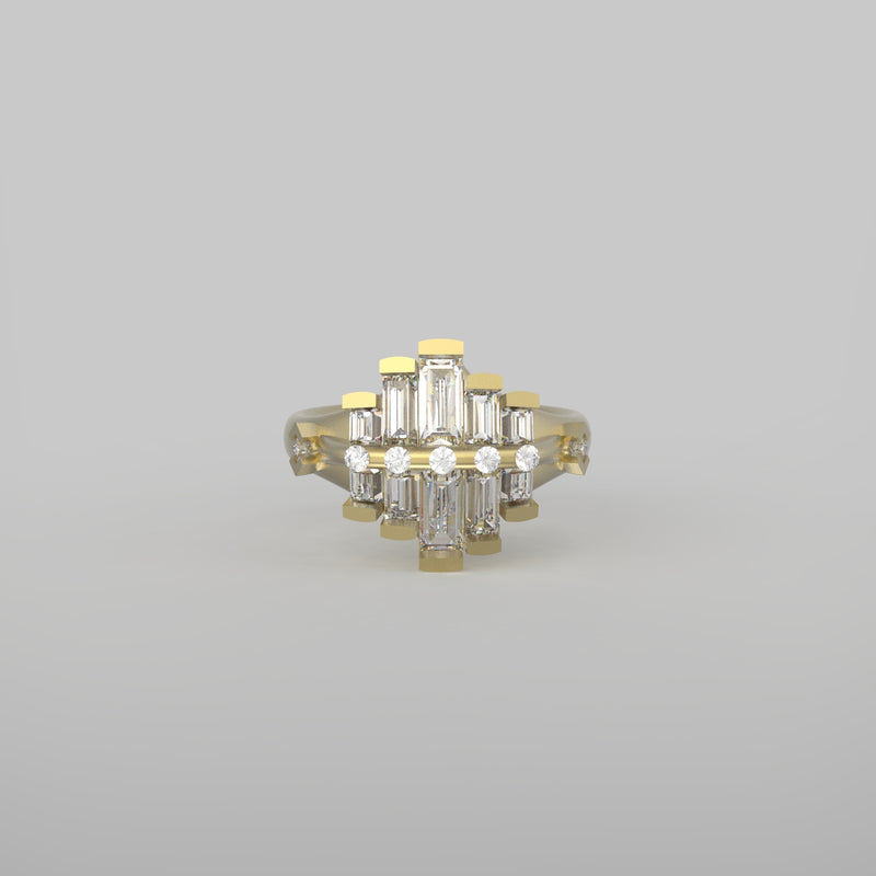- Based on the Art Deco Engagement Ring with Asymmetrical Baguette Diamonds A072AR