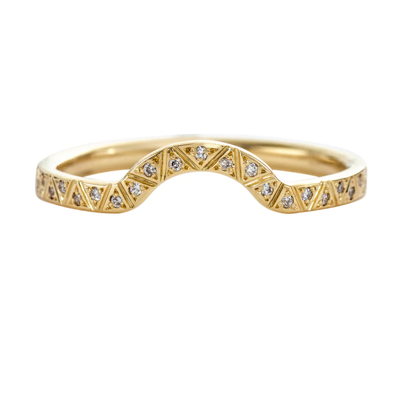 Custom Curved Eternity Ring with Engraved Geometric Pattern, Half Eternity