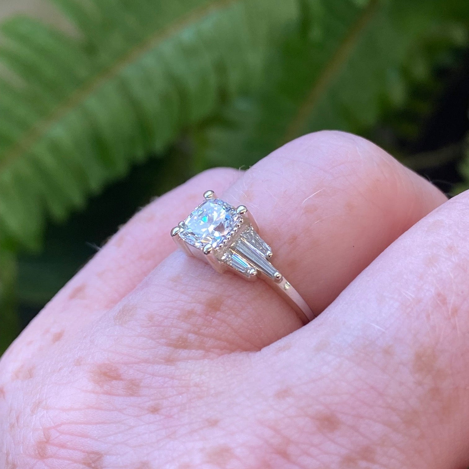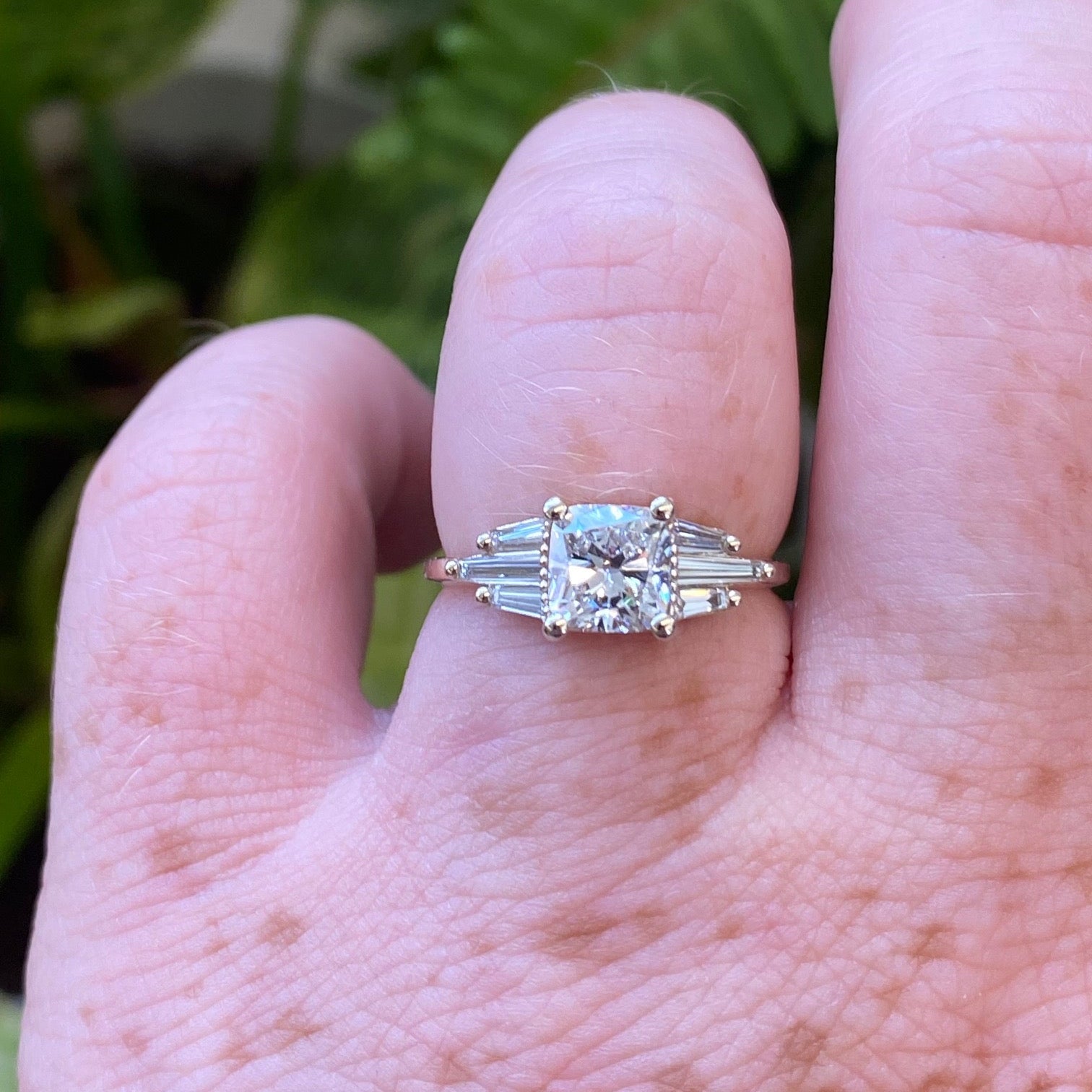 - The tapered baguette diamonds on the sides will also be adjusted to fit with the larger central diamond.