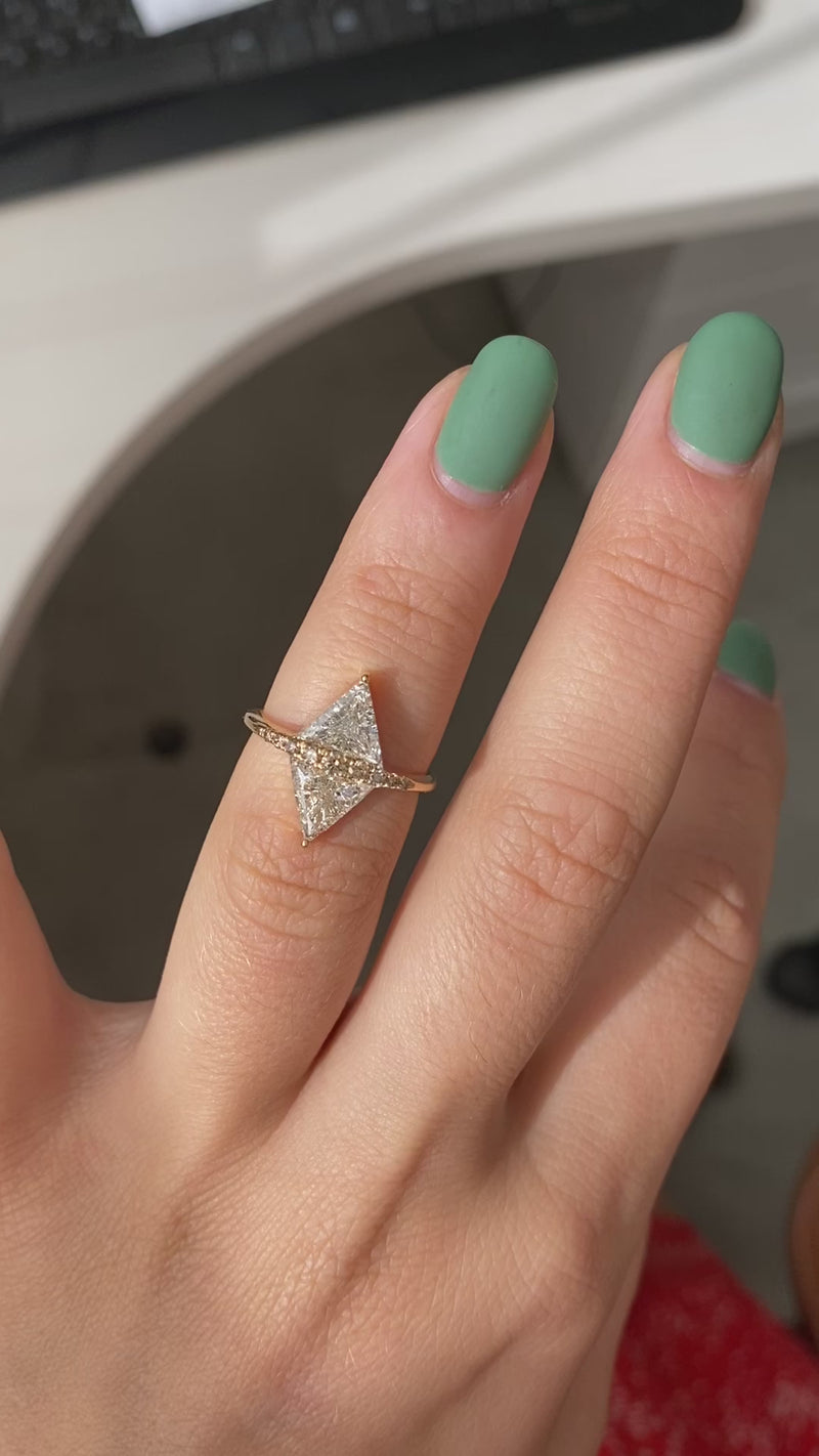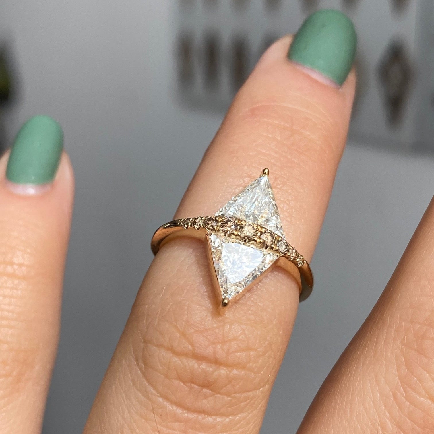 Custom Rhombus Engagement Ring with Brilliant Cut Cognac Colored Diamonds