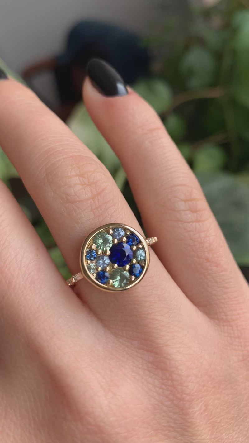 Custom Cluster Engagement Ring with Framed Brilliant Cut Sapphires