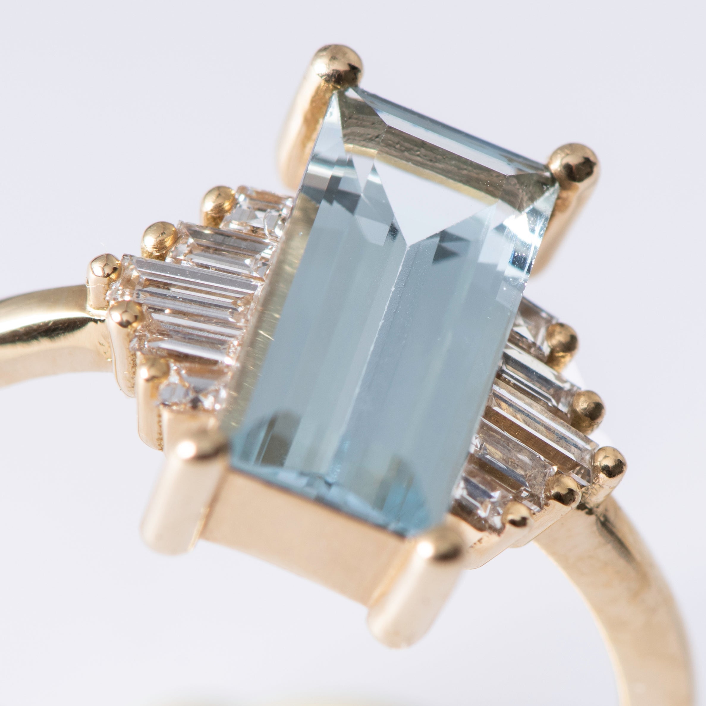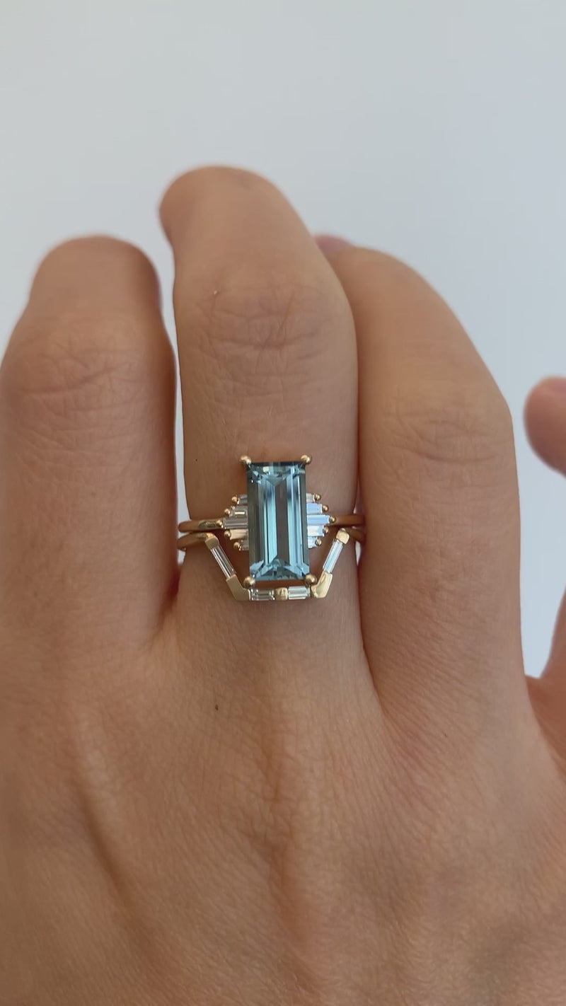 Custom Wedding Ring Set with Baguette Cut Aquamarine Ring and the Trapezoid Nesting Ring