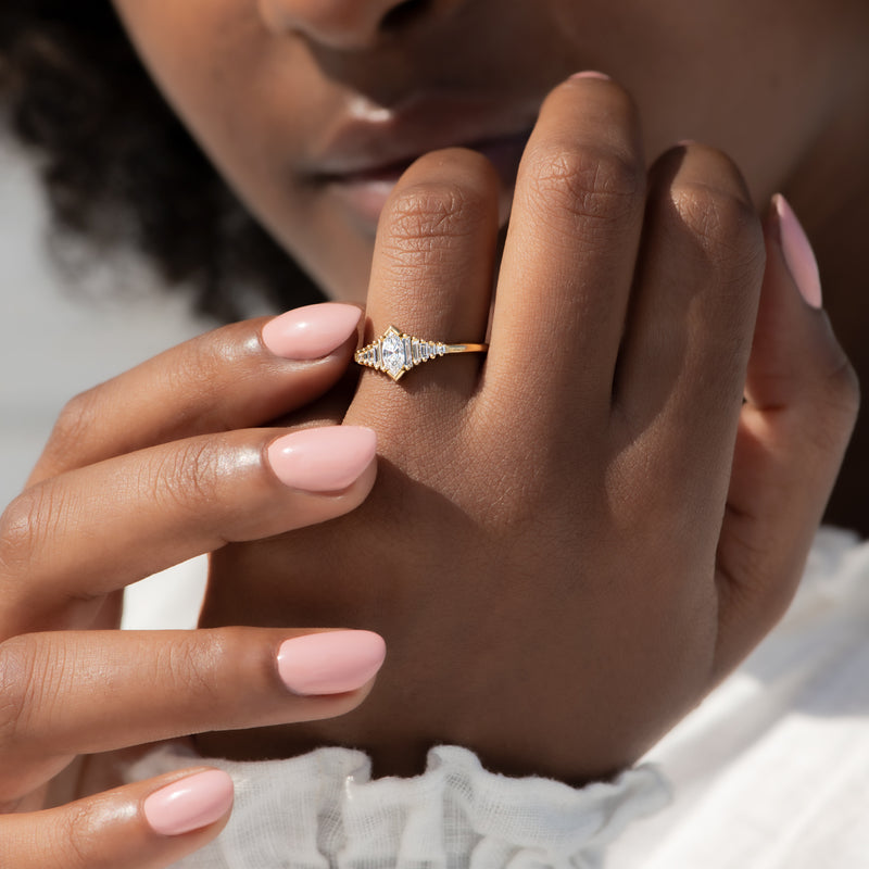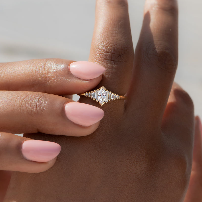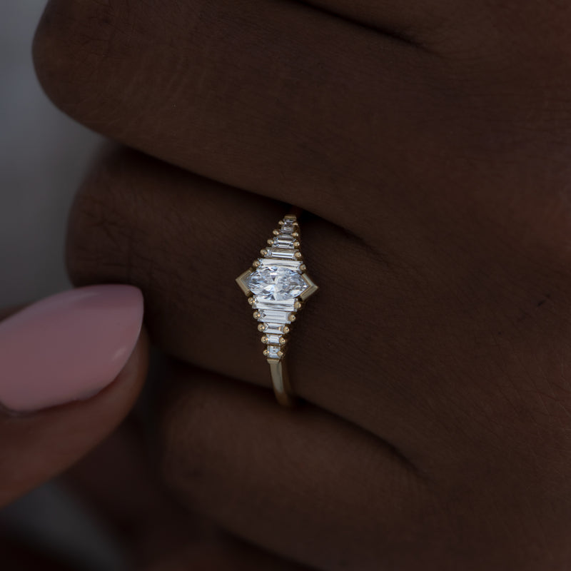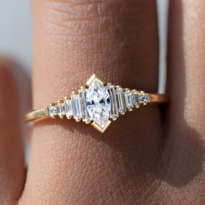 Dainty Deco Engagement Ring with Marquise Diamond