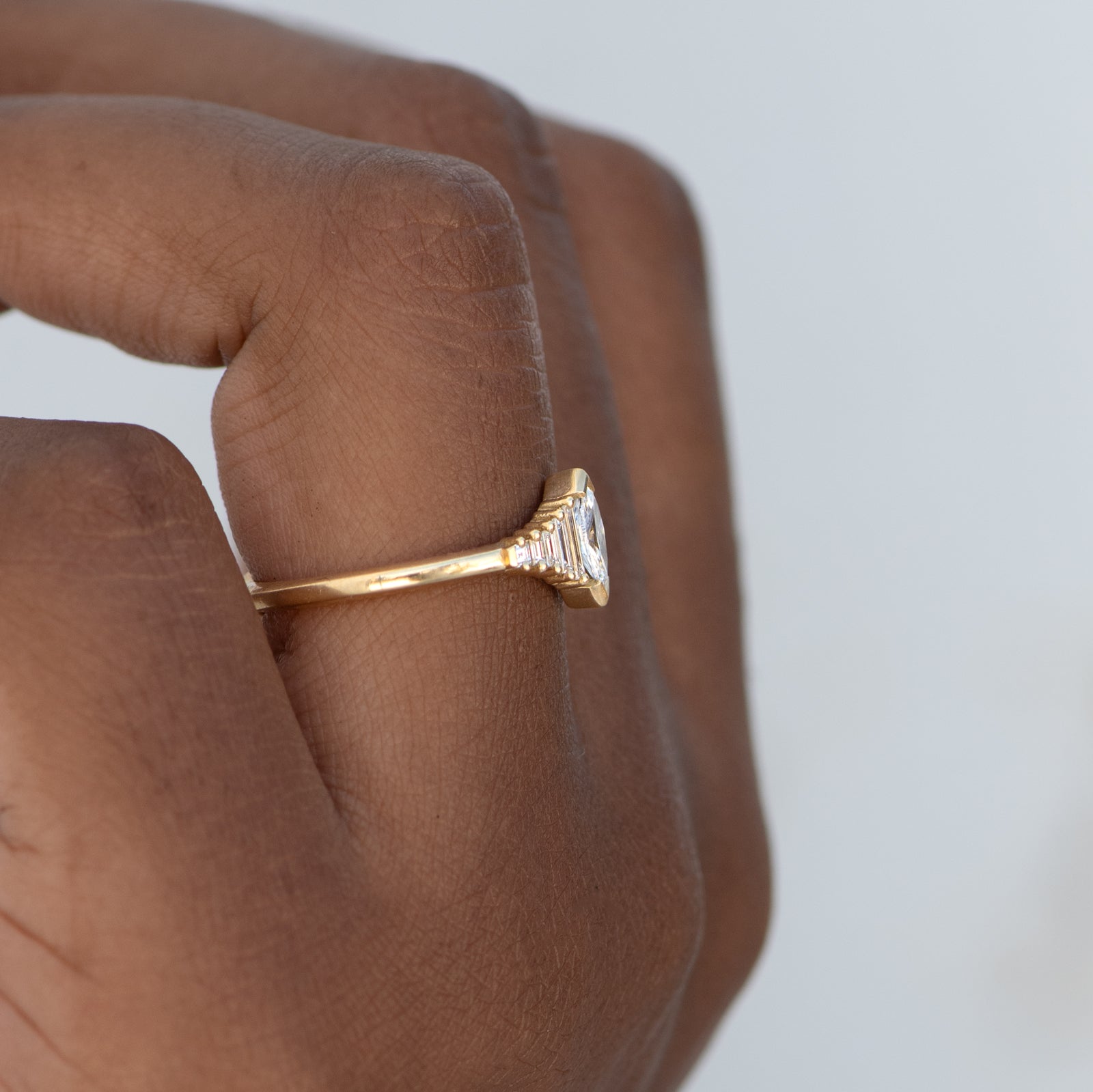 18k gold | ~0.25ct marquise cut diamond | Assemblage of baguette cut diamonds