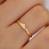 The delicate wedding band - patterned ring features a geometric engraved gold band that dips elegantly into a peak.