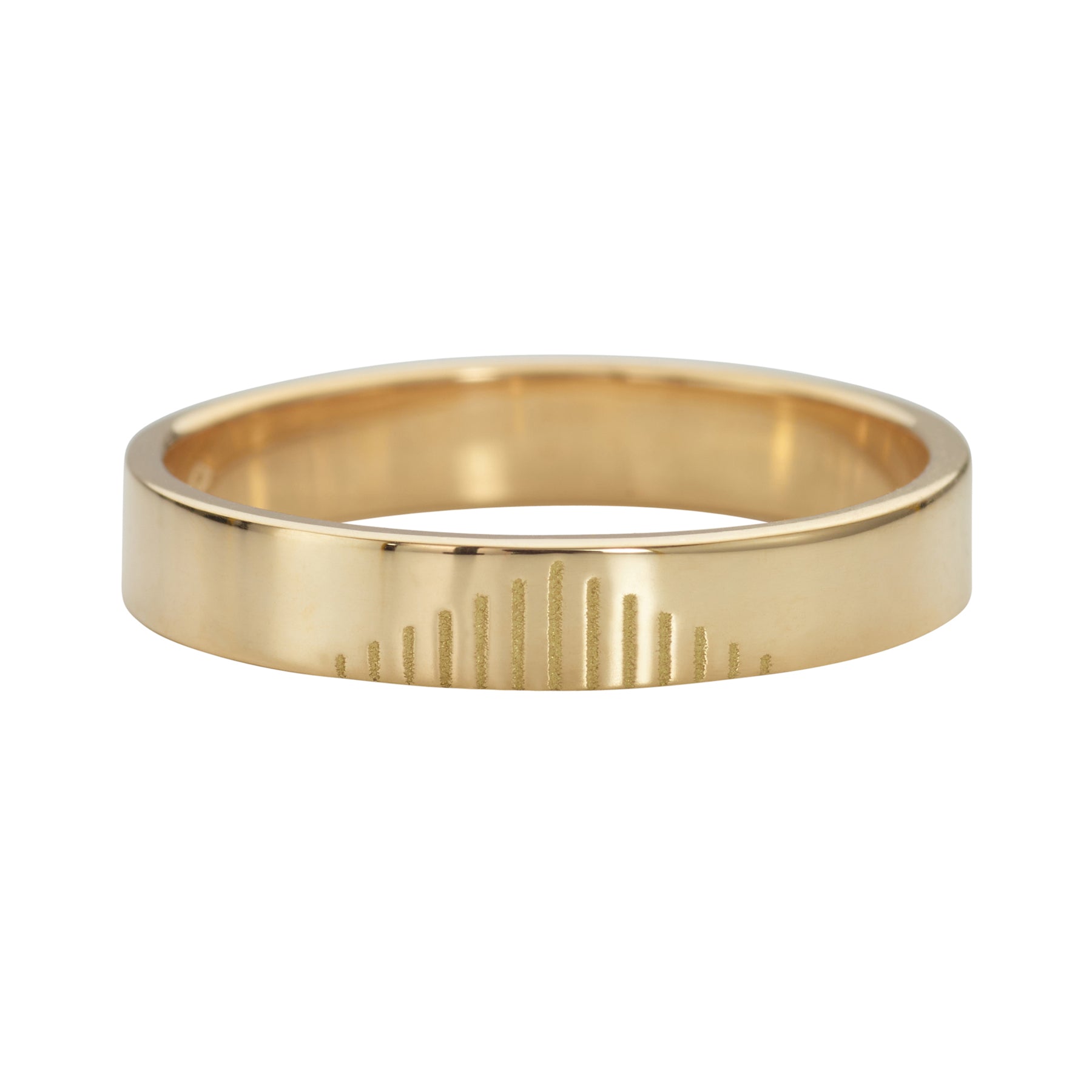 The engraved pyramid wedding band is a modern design with an ode to an ancient time. This ring has a wide, minimal band and accented with a linear engraving in the shape of a pyramid.