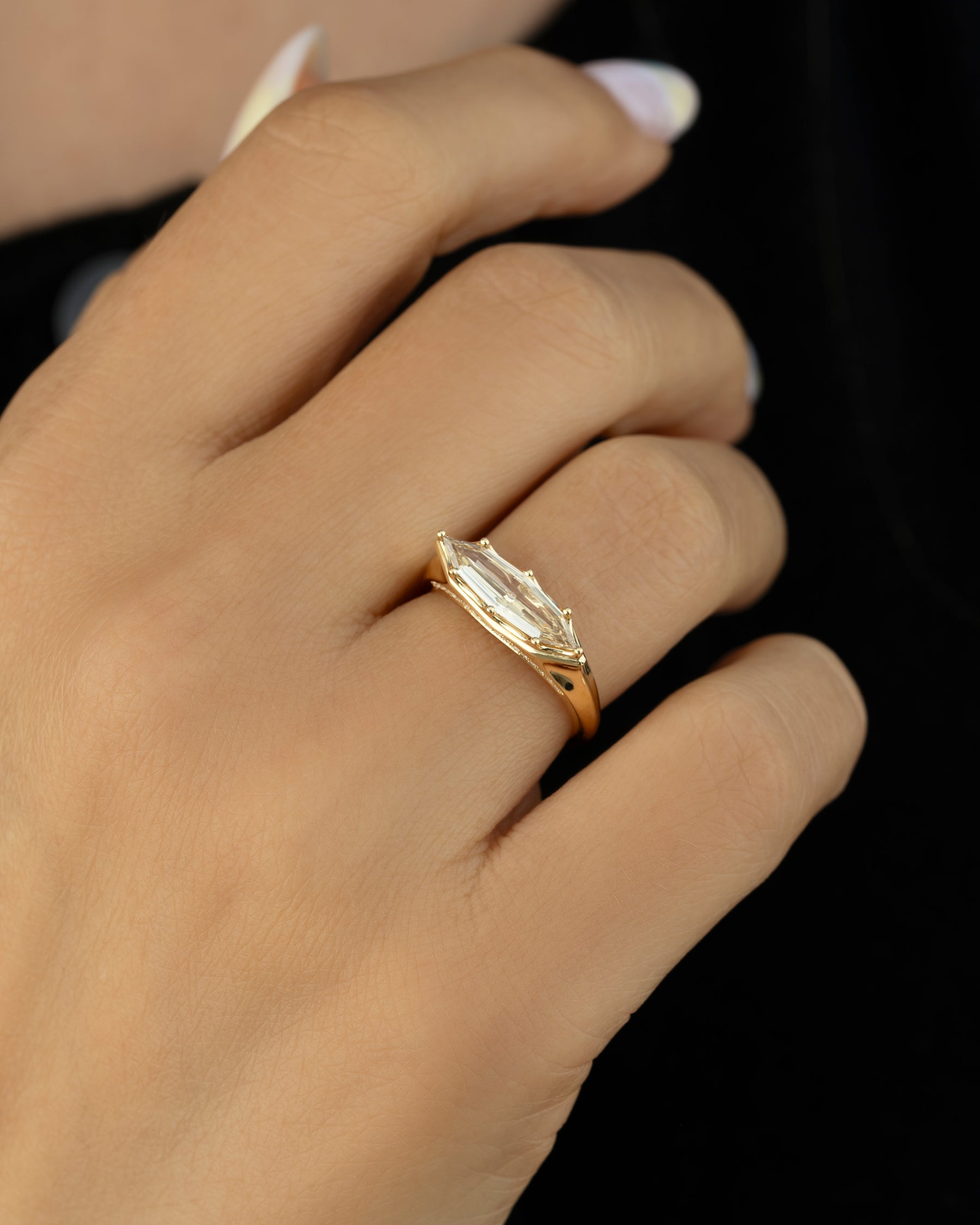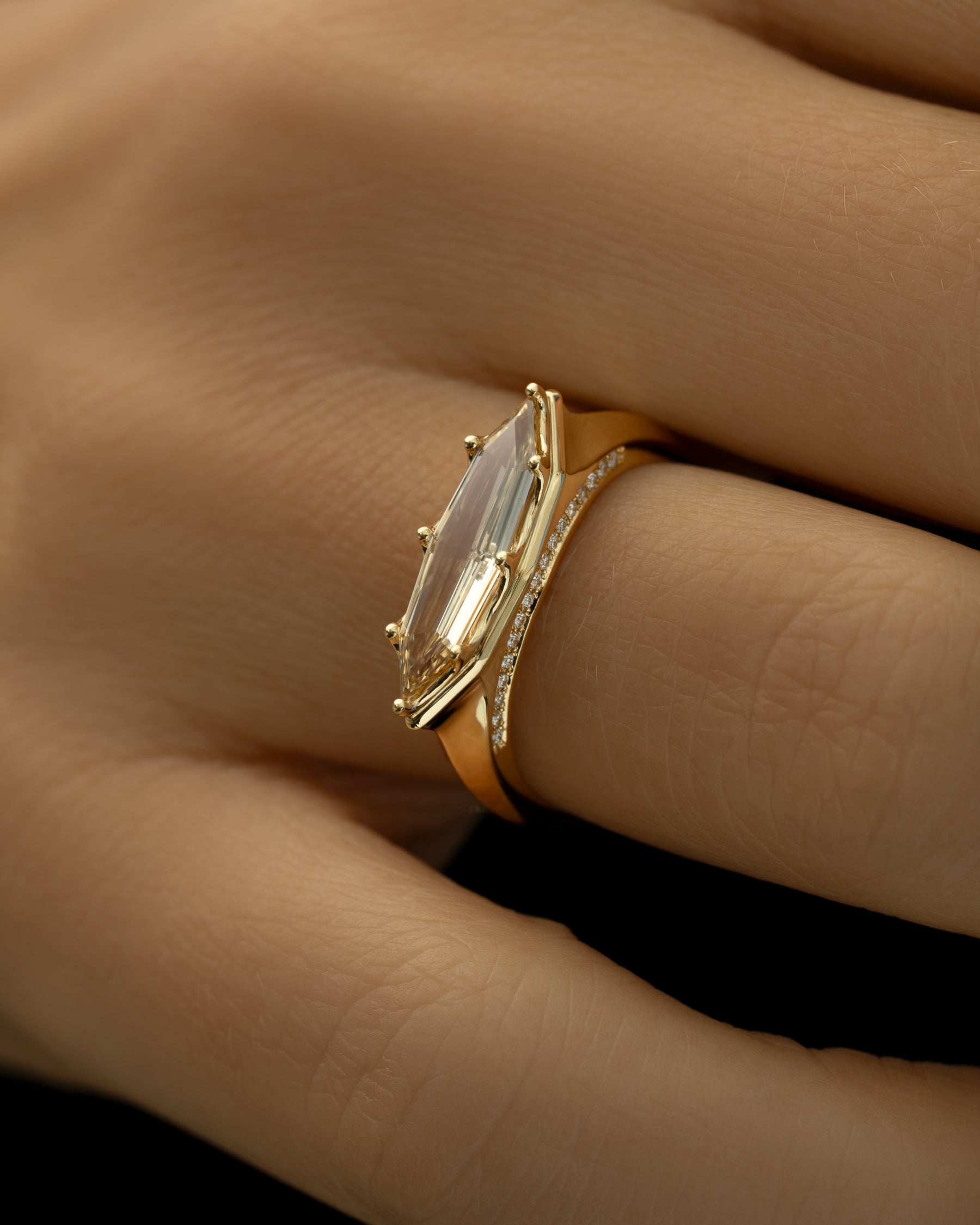 18K gold | Modified marquise step-cut diamond | Brilliant cut diamonds
