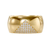 The Geometric Diamond Pave Chunky Cigar Band is hand-crafted from solid 18-karat gold. The curved face of the band is set with glittering pave diamonds in a modern geometric pattern. The wide, rounded profile of the ring adds a touch of boldness that looks as great worn alone as it does stacked.