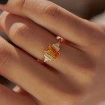 18k solid gold | Orange parti sapphire | Tapered baguette cut diamonds | Trillion cut diamonds