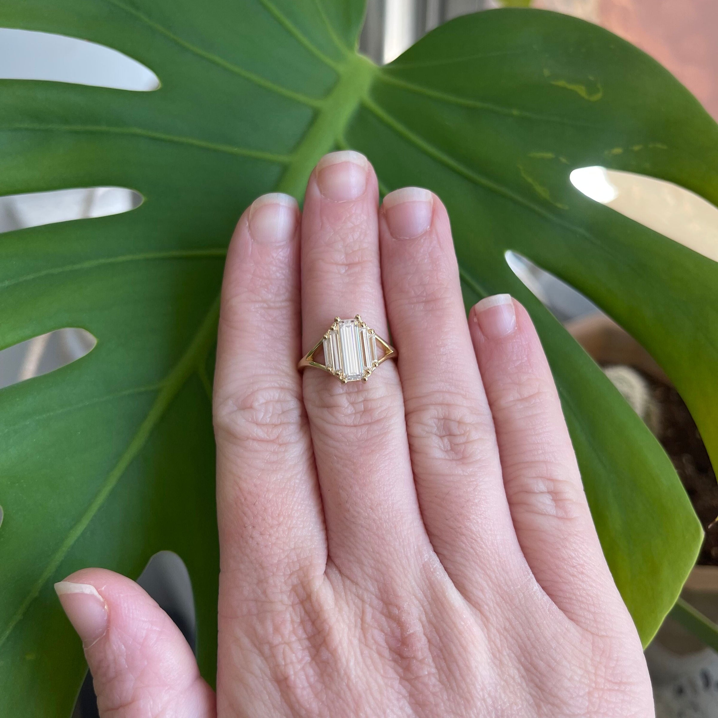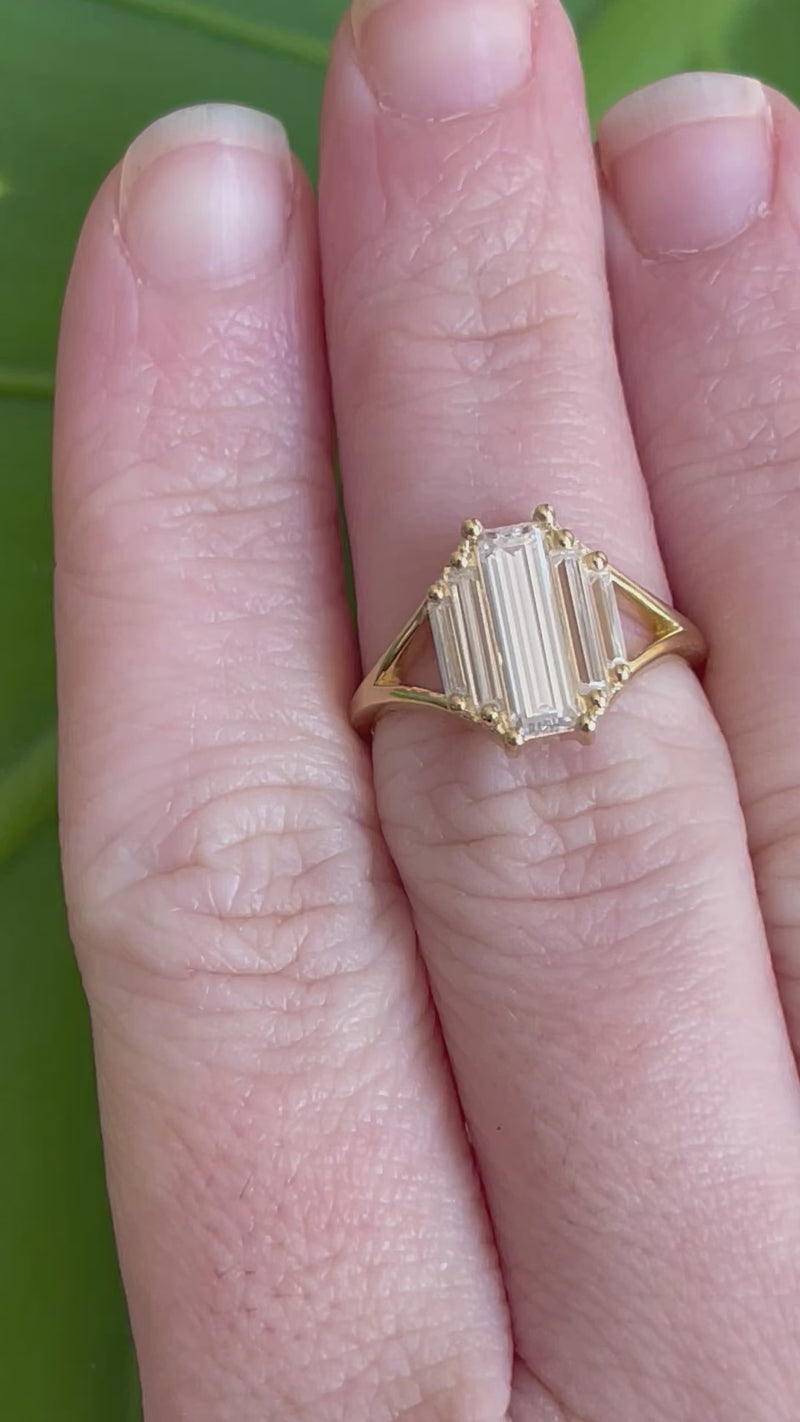 Custom Symmetry Engagement ring with Five Baguette Cut Moissanite