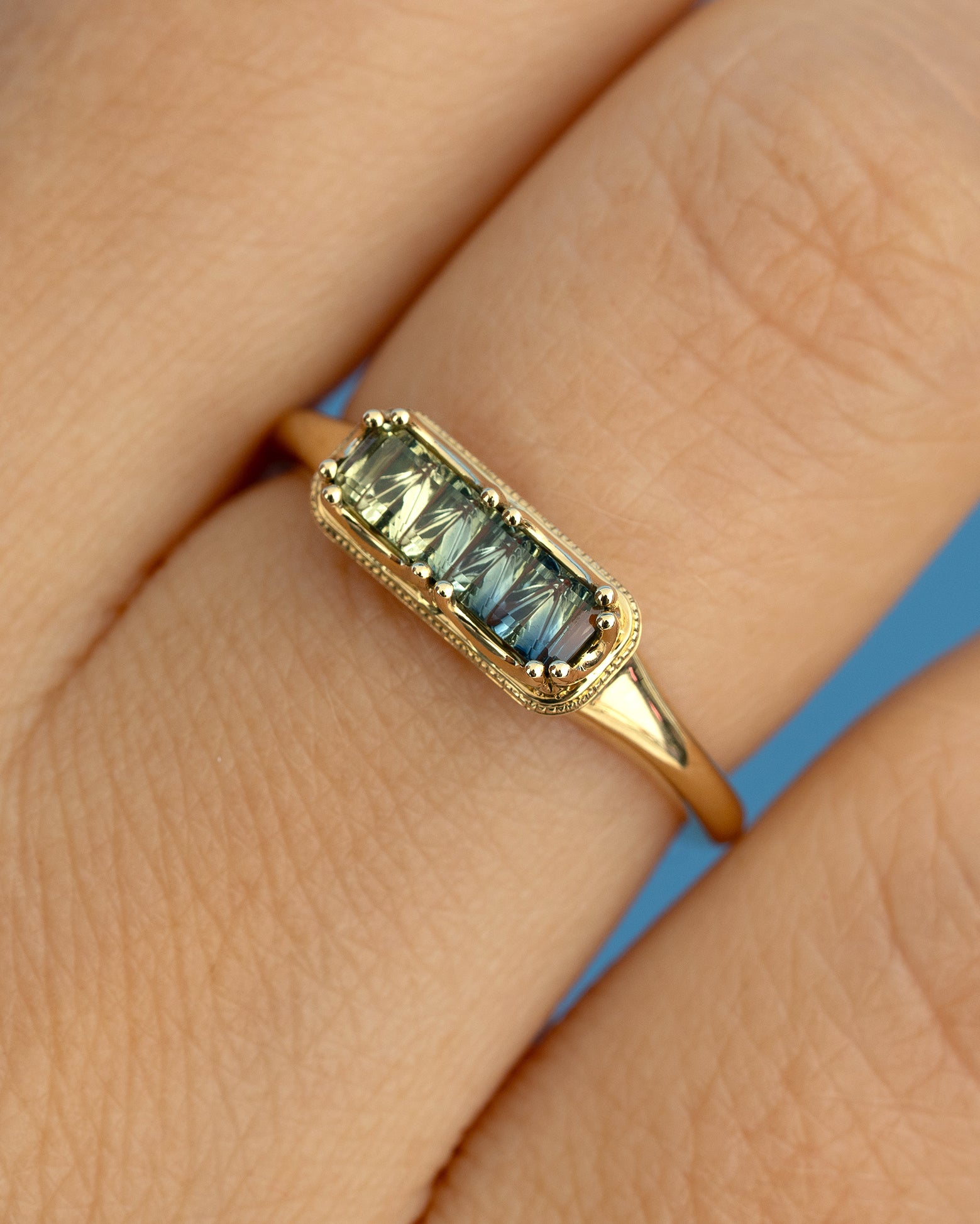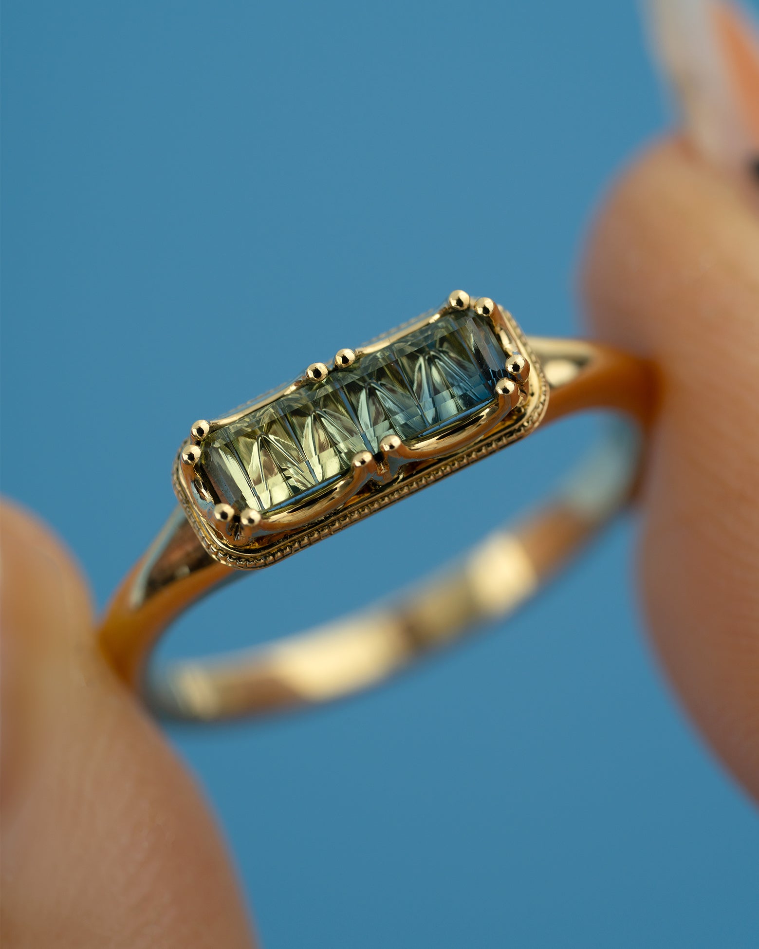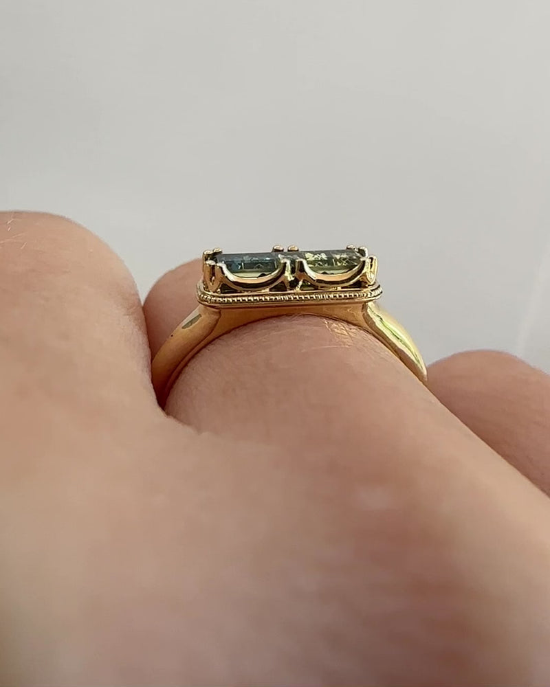 OOAK Novelty Cut Parti Sapphire Ring with Milgrain Detail
